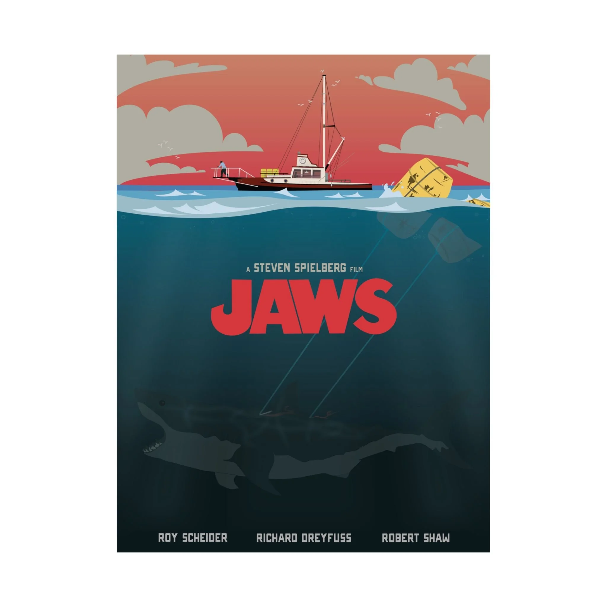 You're gonna need a bigger boat! Printed on museum-grade archival paper with a matte finish, this illustration is for all the JAWS fans out there.