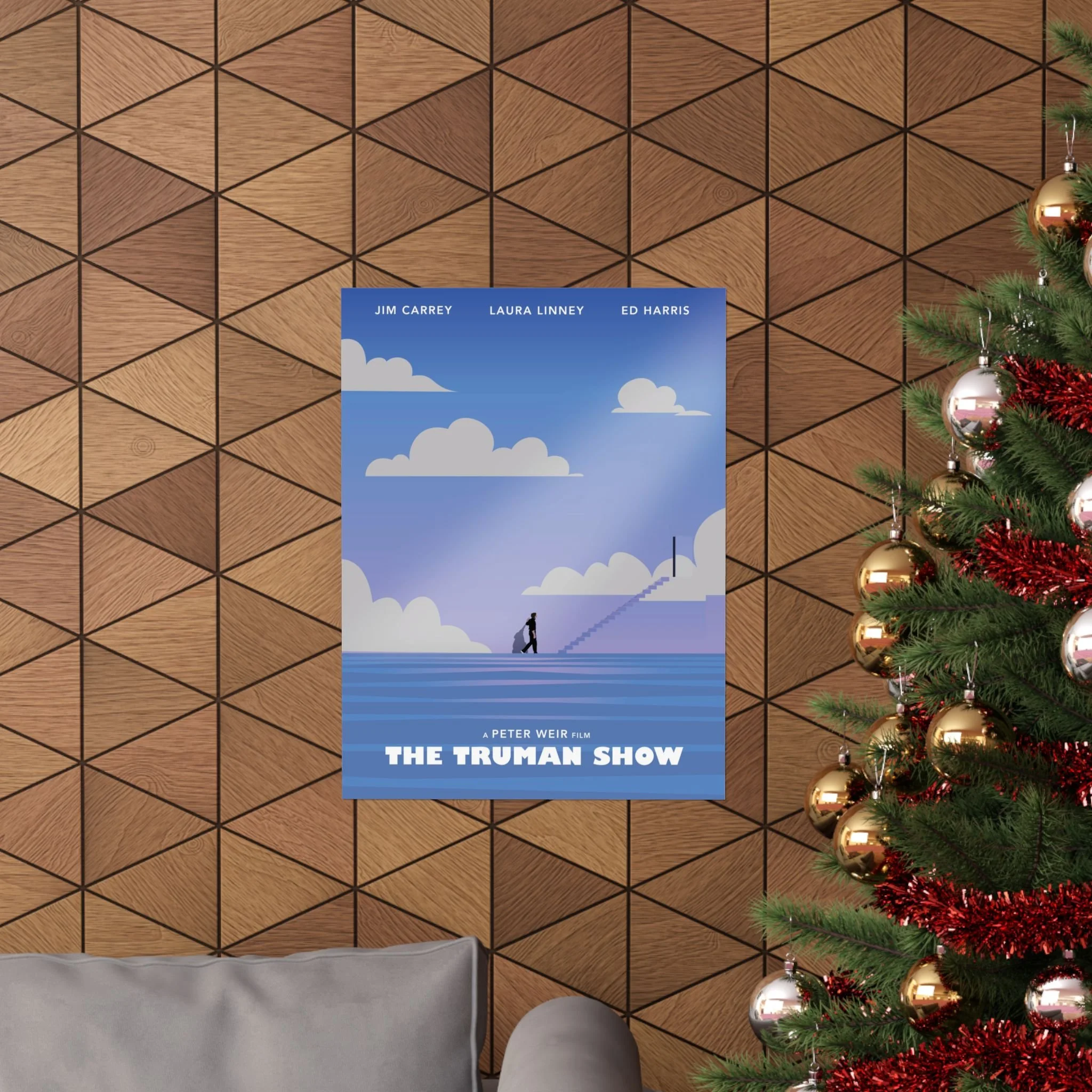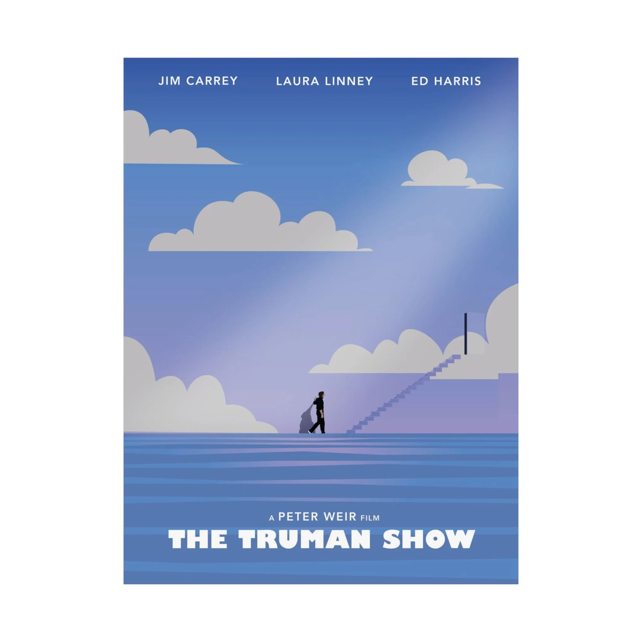 This flat-style illustration captures the unforgettable final moment of The Truman Show, as Truman steps toward the truth and into his own freedom. With minimalist shapes, soft gradients, and a serene palette inspired by the film’s dreamlike world, this print distills the movie’s emotional core into a bold, symbolic scene. Perfect for film lovers, Jim Carrey fans, or anyone inspired by stories of self-discovery, this poster makes a thoughtful and striking addition to any home theater, office, or creative space.