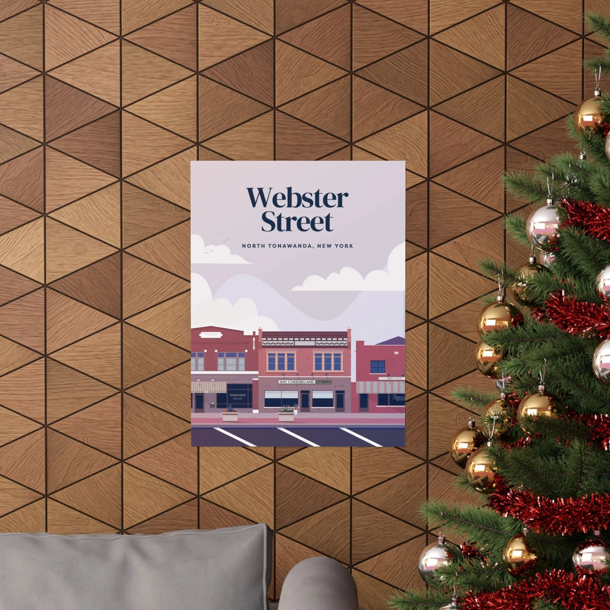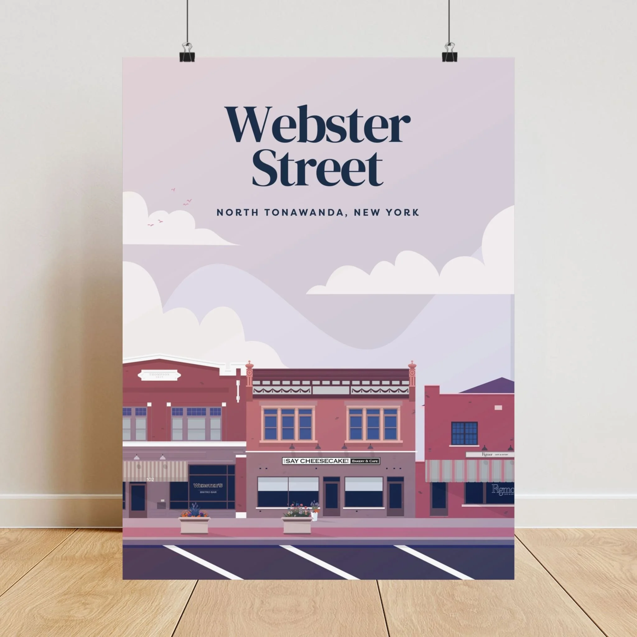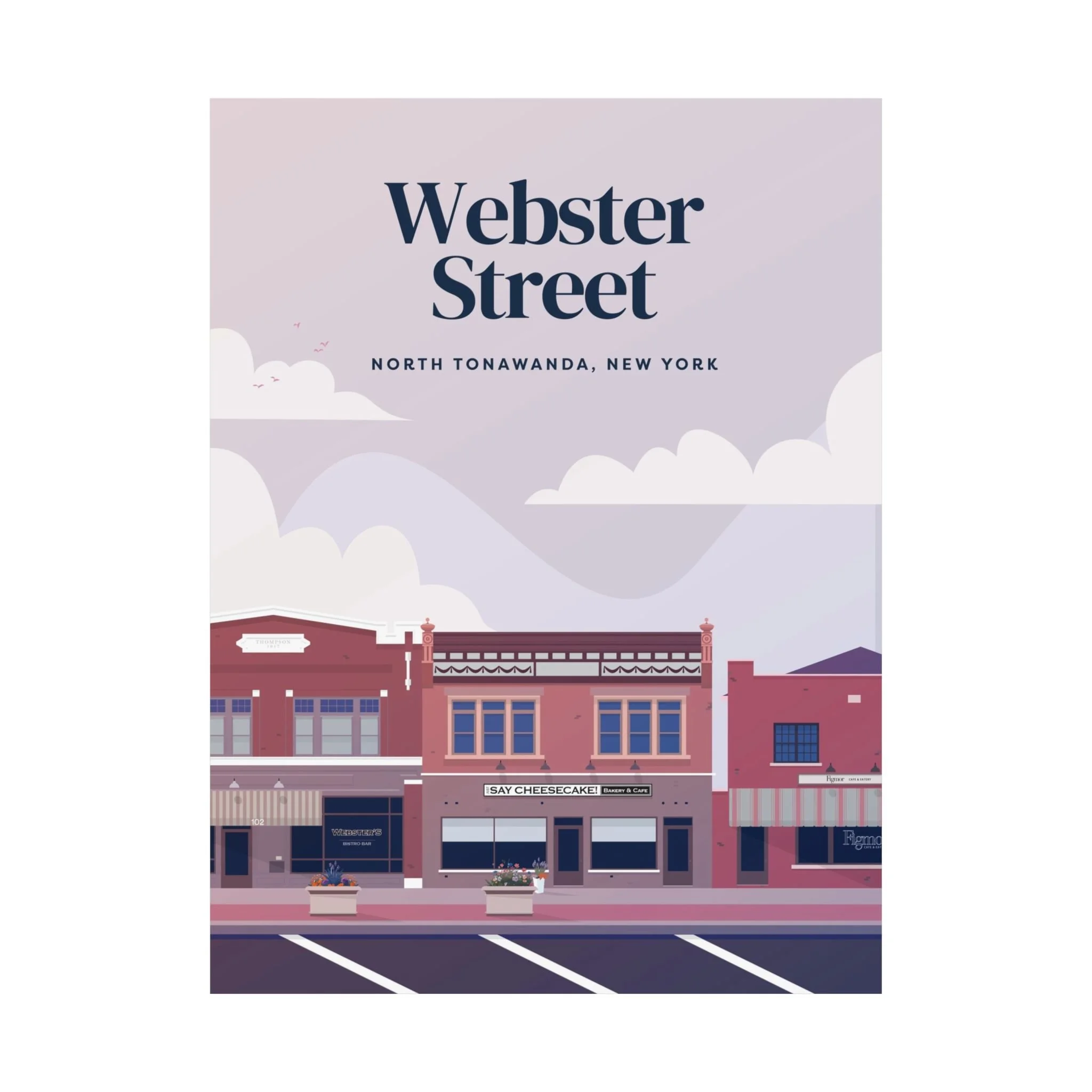 Capture the charm of North Tonawanda’s most beloved street with this vibrant flat-style illustration of Webster Street. Featuring its historic storefronts, local shops, and the warm, welcoming feel of downtown NT, this print highlights the character that makes the street a community favorite. Perfect for locals, former residents, or anyone who loves small-town Main Street nostalgia, this poster brings a touch of North Tonawanda pride to any home, office, or studio.